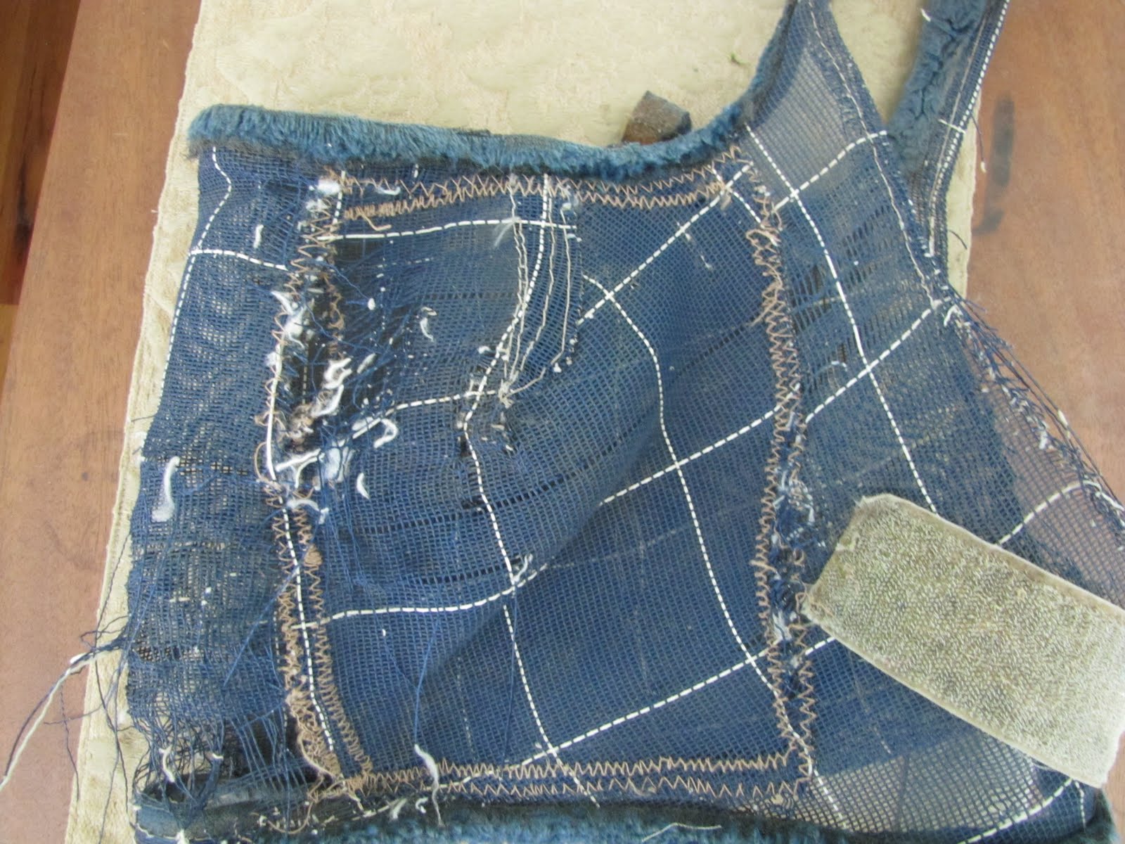 I don't know what Pride does to his fly masks, but they end up in pretty rough shape, mostly over the eyes. Last year I took good parts from one and used it to patch up this one. This side isn't too bad,