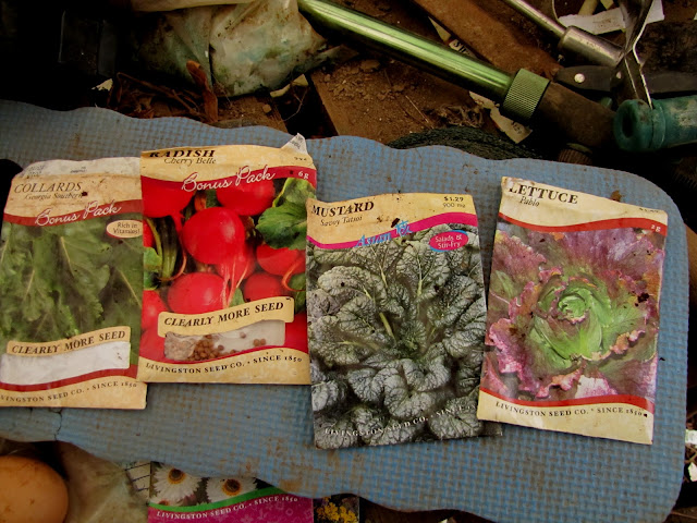 A hen who figured that the greenhouse was a much better place to lay an egg than the actual chicken coop, had got past the falling off wire, and had destroyed two of my cabbage plants. There were another couple that were pulled out, but I stuck them back in and they survived. The wire is all fixed now, but since we are in and out of the greenhouse for tools all the time, and sometimes forget to close the door, I've put a bit of protection over the cabbage and broccoli plants, because you can never be too careful.