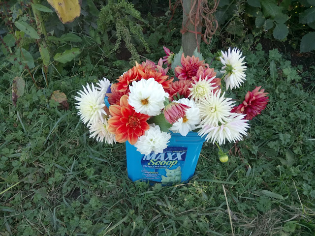 Then it was time for the dahlias. Darn, I found a bucket I had picked on the Saturday, and then had got forgotten.