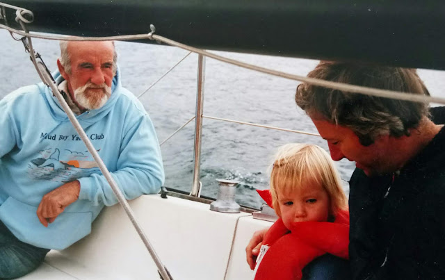 So this is Meredith in 1986, in my Dad's sailboat, on the same river, with some young guy, who the heck is he, oh, that must be Larry!